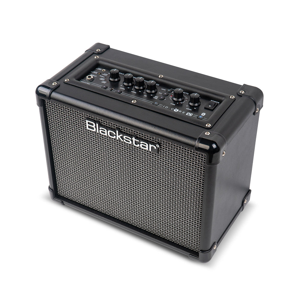 Introducing the Blackstar ID:Core V4 stereo combo guitar amplifierBlackstar’s award-winning ID:CORE series has quickly become established as the one of the best-selling entry level amps on the market. These super compact, versatile, lightweight practice amps are perfect for those just starting out or for those more experienced players looking for a high-quality practice and home studio recording amp.Whether you're a beginner or a pro, when you play, you want to have the best possible playing experience. That’s why the same R&D team responsible for Blackstar's professional amps also designed this series.Unique innovations and connectivity give guitarists the best possible sound from the first time they plug in, and guitarist-friendly controls combined with the power of programmability make for a versatile tonal range. Better still, the addition of Bluetooth allows you to play along wirelessly to your favourite songs, making home practice that bit more exciting!Superior sound quality with Super Wide Stereo technologyThe ID Core V4 series boasts superior sound quality with immersive Super Wide Stereo technology. This unique feature delivers a spacious, three-dimensional sound that fills the room and enhances your playing experience. Whether you're practising at home or recording in a studio, this technology ensures that your guitar tone stands out from the rest.Patented ISF tone controlBlackstar's patented Infinite Shape Feature (ISF) control allows you to infinitely adjust the response of the tone control network for limitless tonal possibilities. Whatever type of sound you prefer, for whatever occasion, with the ID:Core you'll be able to find it.Next-gen speaker simulator for authentic cabinet soundsThe ID Core V4's next-generation speaker simulator, CabRig™ Lite, is an advanced cabinet simulator that accurately reproduces the sound and feel of a miced-up guitar cab. This feature is perfect for players who want to record at home or practice silently using headphones without sacrificing the authentic sound of a traditional amplifier setup.USB-C connectivity for easy recording and live streamingLive streaming is made easy using a TRRS 3.5mm cable for input/output live streaming to a compatible device (i.e. iPhone, Android phone). You can also use this feature to record your performances, perfect for musicians looking to build up a strong portfolio. This model also allows for Bluetooth connectivity, so you can practice by playing along to backing tracks, or by mimicking your favourite artists!Linear speakers for versatile audio useIn addition to delivering exceptional guitar sound, the ID Core V4's linear speakers make it a versatile audio device suitable for gaming or watching movies. This makes it an ideal amplifier for musicians looking to enhance their gaming experience or for those wanting an all-in-one audio solution.Power reduction feature for flexible volume controlThe ID Core V4's power reduction feature allows you to play at lower volumes without losing tonal quality. This makes it the perfect amp for home use, allowing you to practice and record without disturbing others. It also means you can achieve your desired tone at any volume level.More useful informationID:Core handbookThe ultimate feature-packed home practice amp for beginners or pros, Guitarist-friendly controls combined with the power of programmability for versatile tonal range, Programmable amp with studio quality effects from 2 speakers, Live streaming made easy using a TRRS 3.5mm cable for input/output, Next-generation CabRig™, with user controls for elements such as cabinet and mic choice., Bluetooth version allowing for wireless playback, letting you play along to your favourite tracks
