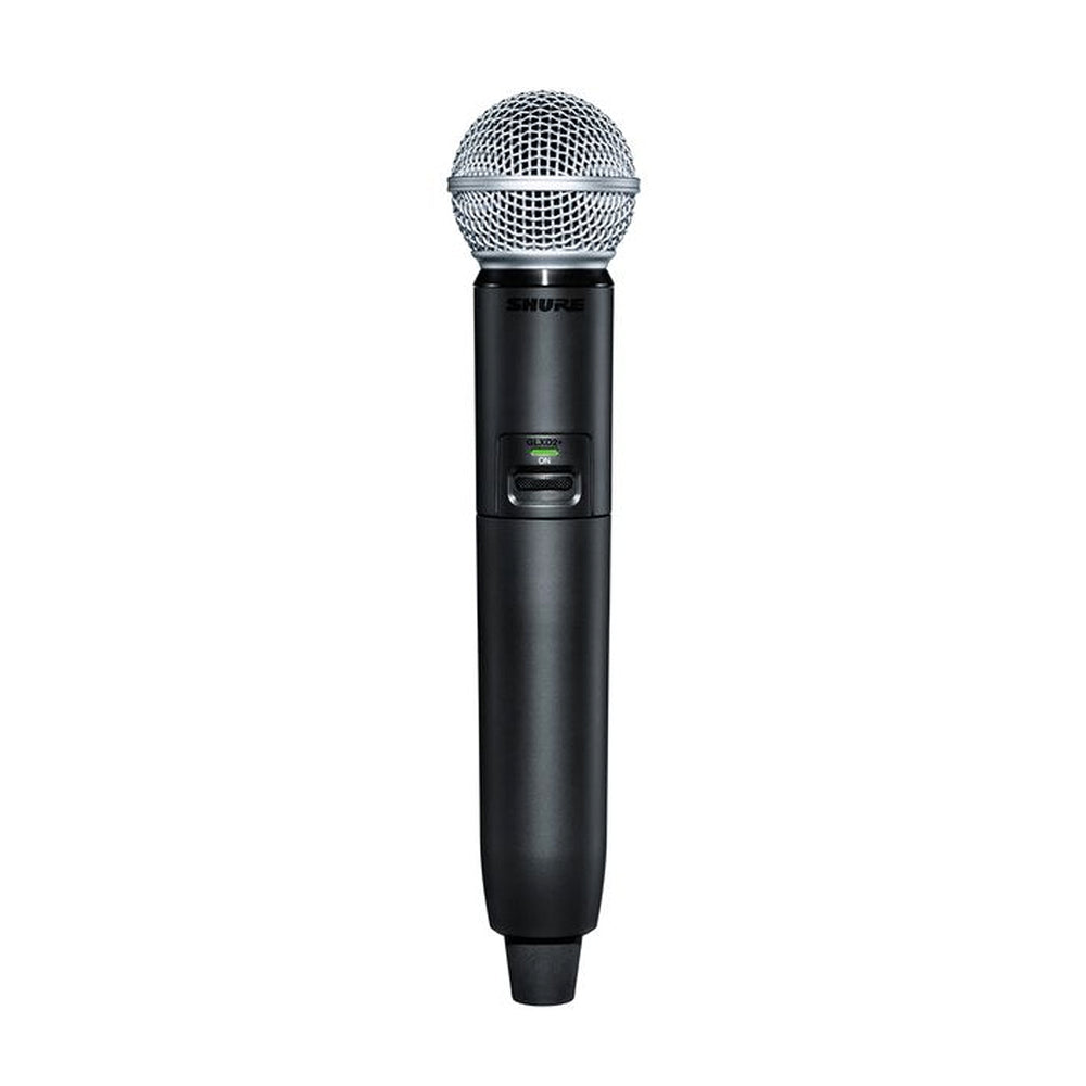 Introducing the Shure digital wireless handheld system and SM58 vocal microphoneFeaturing the highly praised SM58 vocal microphone, the GLXD24-SM58 delivers superior, transparent digital audio. It’s got a high-resolution LC display, automatic frequency management, and new dual band technology, which gives you a reliable and consistent performance. The GLXD24-SM58 is ideal for musicians, podcasters, presenters and anyone looking to get a quality, wireless mic.The SM58The durable SM58 dynamic microphone has a frequency range 50 - 15,000 Hz and cardioid polar pattern that rejects unwanted noise. It’s the industry standard and an extremely popular choice amongst professionals due to its versatility, rugged construction, transparent sound and balanced frequency response.Perfect for live performersWireless technology makes it easy for musicians, comedians and broadcasters to share their work without any interference. With dual band from 2.4 GHz to 5.8 GHz, reliable automatic frequency setup, and up to 60 metres of range, you can comfortably and confidently focus on your performance.The GLXD24-SM58 also gives you up to 12 hours of battery life, which is necessary for those doing long shows or tours. Thanks to the intelligent design of the battery life display, you can see how long your battery will last in hours and minutes, making it easy to keep an eye on how much time you’ve got left. Plus, the integrated battery charging slot offers quick charge capabilities and makes charging your mic simple and convenient. What’s in the box?Dual band digital wireless systemSM58 vocal microphonePS43 power supplySB904 lithium-ion rechargeable batterySwivel adapterBlack carrying caseMore useful informationUser Manual and SpecificationsFeatures new dual band technology, Includes the powerful SM58 vocal microphone, Provides dropout-free audio, XLR and 6.3 mm jack outputs, Up to 12 hours of use, With a lithium-ion rechargeable battery