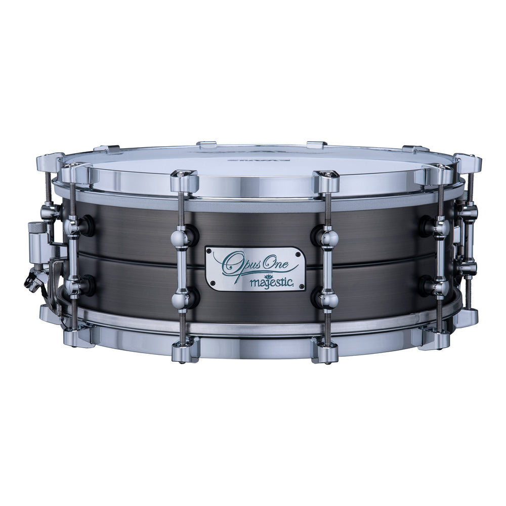 Introducing the Majestic Opus One brass concert snare drumDating back more than a century, brass has been a preferred snare drum shell material providing extreme clarity and performance in a variety of musical settings. The antique nickel brushed finish over a 1.2mm brass shell exudes understated elegance while facilitating desirable tonality and sensitivity throughout the extremities of dynamic range.Testimonials from Opus One featured artists“The Opus One concert snare drum series by Majestic will reach every musical itch any percussionist could have. The momentum and fresh thinking that is embedded in the development of these instruments should lift the snare drumming community out of its present rut.â€Christopher Lamb - Principal Percussion, New York Philharmonic “The Opus One series from Majestic is exactly what the percussion community has been waiting for!Simple, elegant, and unique. The wide spectrum of sounds guarantees to fulfill anyone’s musical needs.â€She-e Wu - International Soloist and Educator The OP-01 strainer and integrated bridgeThe smooth and silent OP-01 strainer is a simple and classic functional design featuring a laser-engraved knurled vertical fine tuner adjustment. This snare also features an integrated bridge that sets the optimal angle, allowing the snare cables to establish a true and consistent point of contact with the resonate side head. The result is extreme responsiveness at all dynamic levels and playing areas of the drum.Hybrid snaresEach model features its own unique set of hybrid or single snare cables in order to maximize sensitivity of the instrument with which they are paired.I LugsTo achieve a classic and elegant look as well as maximum shell resonance, the Opus One series drums feature the chrome plated "I" lug. This paired with the Antique Nickel brushed finish gives this snare class and professionalism in all situations.Claw hook designThe revolutionary “Rigid-Cast†claw hook design utilizes an oblong receiver hole enclosed in a diecast housing which prevents cracking, ensuring proper tuning alignment, and allowing flexible tolerance for both synthetic and natural heads.Head selection and Drumdialâ„¢ optimisationIn addition, each model comes with specific head combinations and specific Drumdialâ„¢ tuning suggestions through extensive testing and collaboration with world renowned artists.The Frequency ModifierOpus One snare drums come with Frequency Modifier (FM) accessories intended to allow performers to quickly modify the snare drum’s tone. They have been extensively tested and tailored using the most suitable materials, shapes, and weights as to not muffle desirable frequencies or stifle the drum’s response, but rather allow the player to enhance and expand the pallet of sounds available.More artist testimonials... "The Opus One snare drums have an incredible richness and depth to their sound while also having the ability to cut through the texture of an orchestra. Each model offers a unique tone and colour that can help draw the appropriate character out of a piece. We are incredibly delighted to have the Opus One drums in our snare drum inventory!"Andres Pichardo-Rosenthal - Detroit Symphony Orchestra "The 14" x 4" brass Opus One snare has become my main instrument of choice. It's beautiful construction, unparalleled sensitivity, and evenness of articulation at all dynamics allows me to perform modern repertoire without having to sacrifice warmth for clarity."Doug Bush - Team Islas/Author and Educator "What a line-up! The Opus One series is packed with versatility, color, taste, and personality. It's great to see a series aimed to put the basics at their best: easy command of tuning and timbral control; simple construction and design; good sounding pitch at all tunings with beautiful tone; a refreshing beautiful look."Casey Cangelosi - International Soloist and EducatorAbout MajesticMajestic is a brand of thoughtfully designed instruments for the professional, the educator, and today’s percussion student utilizing carefully constructed ideas born from both traditional percussion instrument heritage and a culture of innovation. The family firm was founded in 1921, supplying organs, pianos and wind instruments with the production of percussion following shortly after.In 1960 the Majestic brand name was introduced, starting with drum kits which were prevalent among rock bands in the Netherlands. Orchestral and marching percussion soon became the corner stone of the brand, with timpani, marching drum and tuned percussion becoming areas of speciality for Majestic.To this day product development, engineering, and production are overseen by family members and every model must adhere to stringent standards of craftsmanship and performance. Please note: all large tuned percussion instruments such as xylophones, marimbas, and vibes etc. are delivered boxed and require assembly.The integrated bridge sets the optimal angle, Each model features a unique set of hybrid or single snare cables to maximize sensitivity, Revolutionary “Rigid-Cast†claw hook design - oblong receiver hole enclosed in diecast housing, Frequency Modifier (FM) accessories allows performers to quickly modify the snares tone, Antique nickel brushed finish,