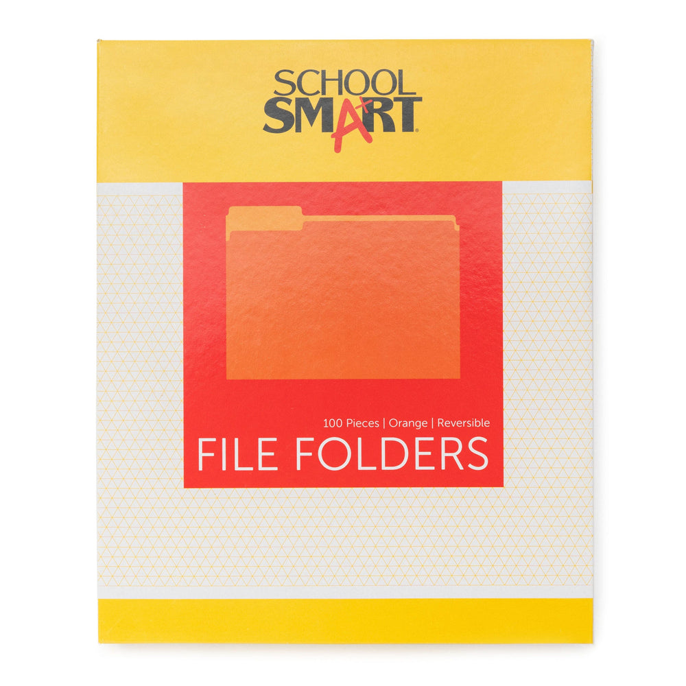 School Smart Colored File Folders Two-Tone, Letter Size, 1/3 Cut Tabs, Orange, Pack of 100