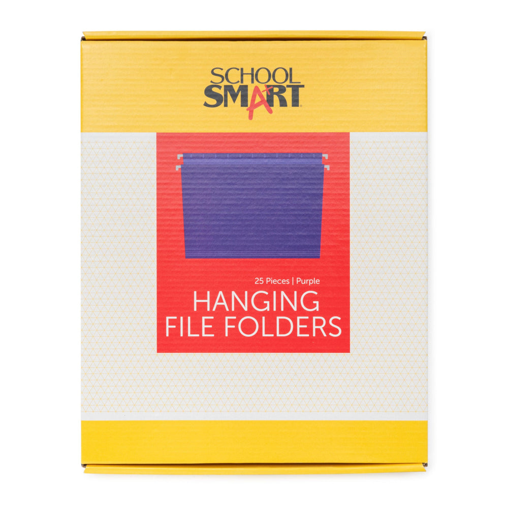 School Smart Hanging File Folders, Letter Size, 1/5 Cut Tabs, Purple, Pack of 25