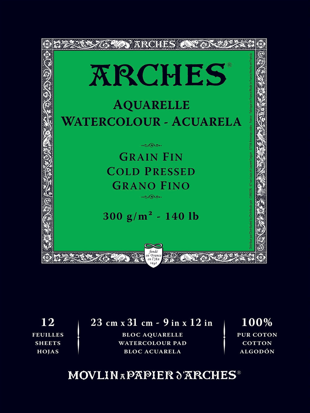 Arches Aquarelle Watercolor Pad, 9 x 12 Inches, Cold Press, 140 lb, White, 12 Sheets