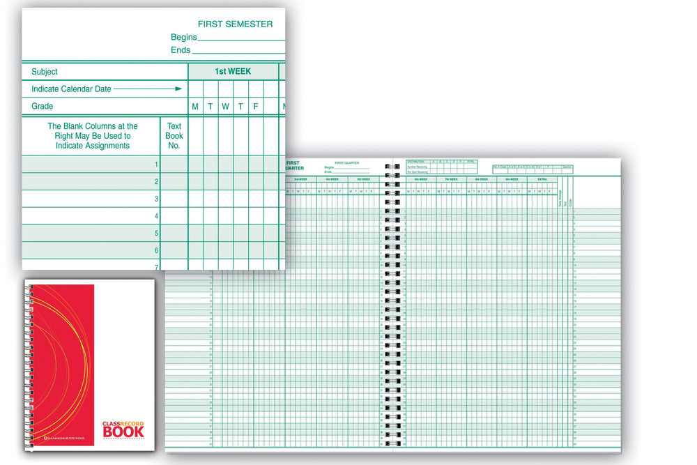 Hammond & Stephens Class Record Book, 8-1/2 X 11 inches, 40 Students, 8 Subjects, 9/10 Week, Green, White