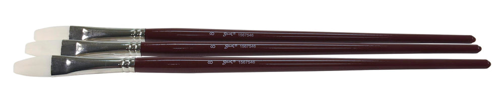 Sax Optimum White Synthetic Taklon Paint Brushes with Long Handles, Flat Type, Size 8, Set of 3