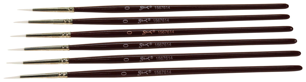 Sax Optimum White Synthetic Taklon Paint Brushes, Round, Size 0, Set of 6