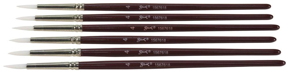 Sax Optimum White Synthetic Taklon Paint Brushes Short, Round, Size 4, Set of 6