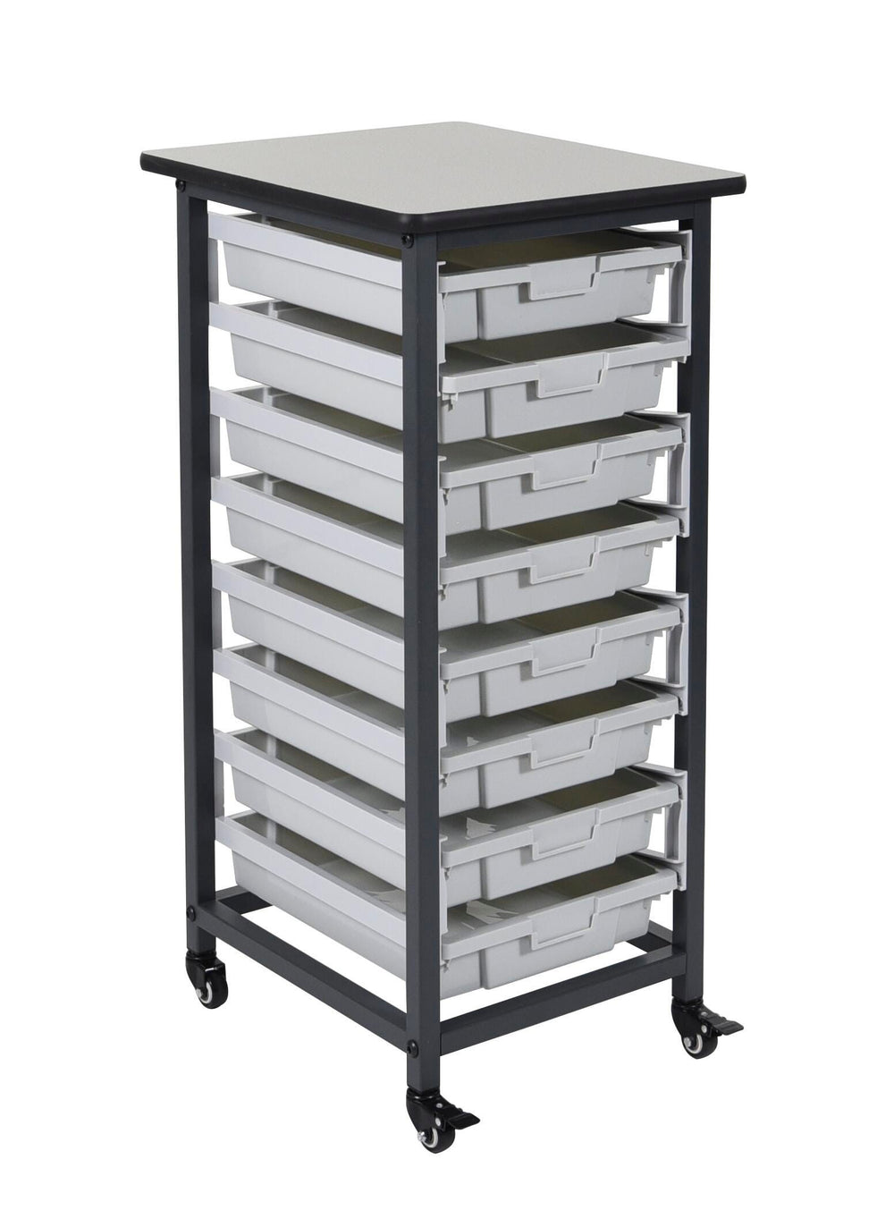 Luxor Mobile Bin Storage Unit, Single Row, 8 Bins, 3 Inch Deep