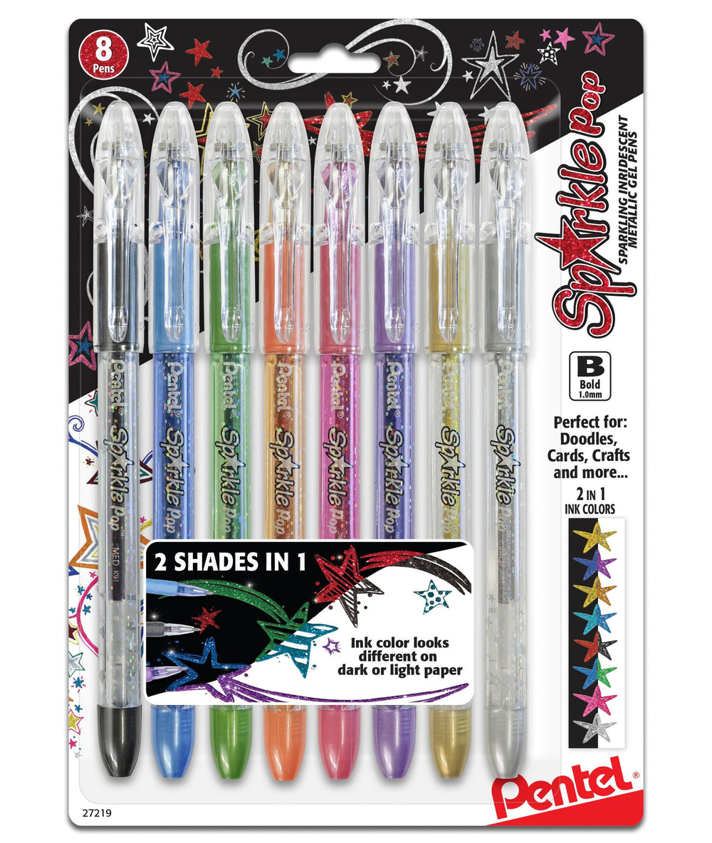Pentel Sparkle Pop Metallic Gel Pen, 1.0 mm Bold Line, Assorted, Pack of 8