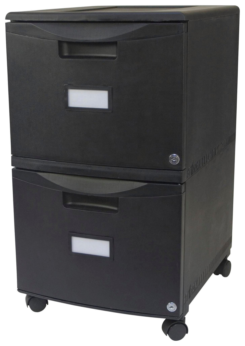 Storex Ind. 2-Drawer Locking Mobile Filing Cabinet -- File Cabinet, 2 Drawers, Ltr/Lgl, 15-1/2 x 18-1/2 x 26-1/4 Inches, BLACK