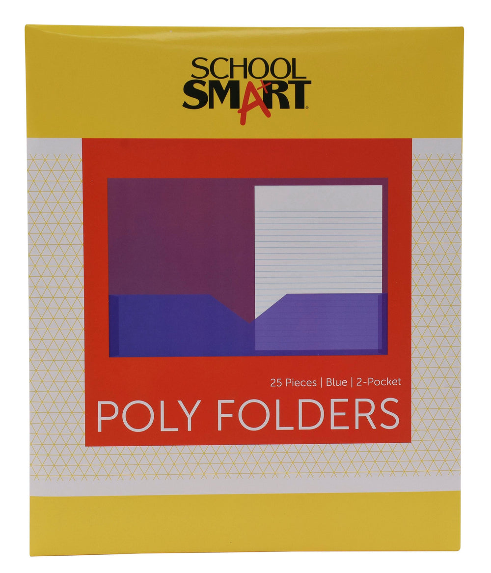 School Smart 2-Pocket Poly Folders, Blue, Pack of 25