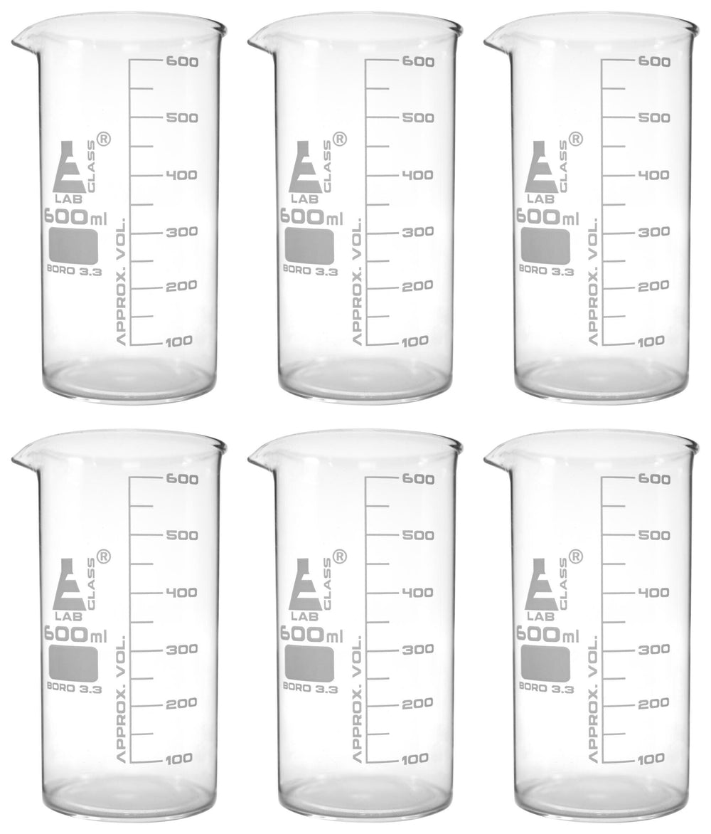 Eisco Labs Beaker, Borosilicate Glass Tall Form, 600ml, Pack of 6