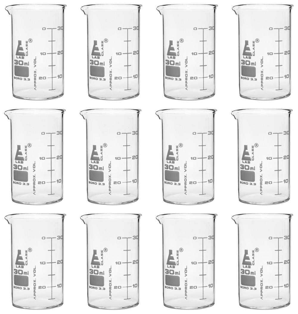 Eisco Labs Beaker, Borosilicate Glass ASTM, 30ml, Pack of 12