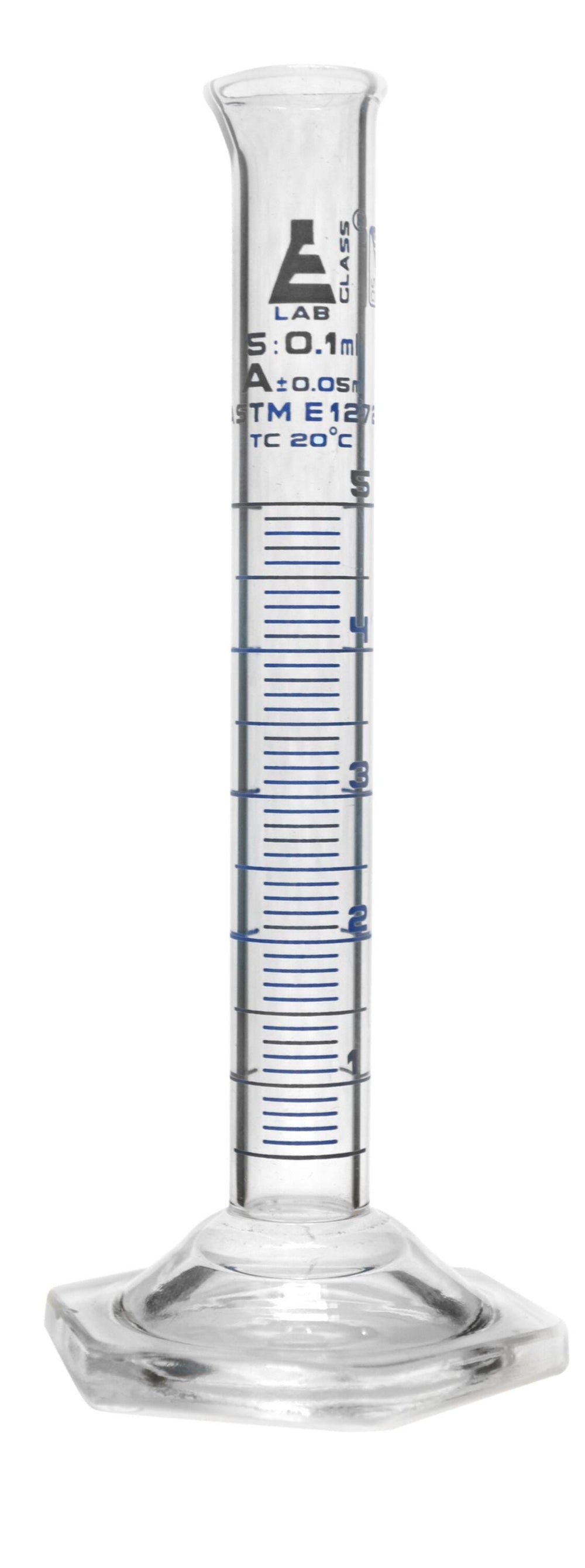Eisco Labs Graduated Cylinder, Glass, Class A, Hexagonal Base, 5ml
