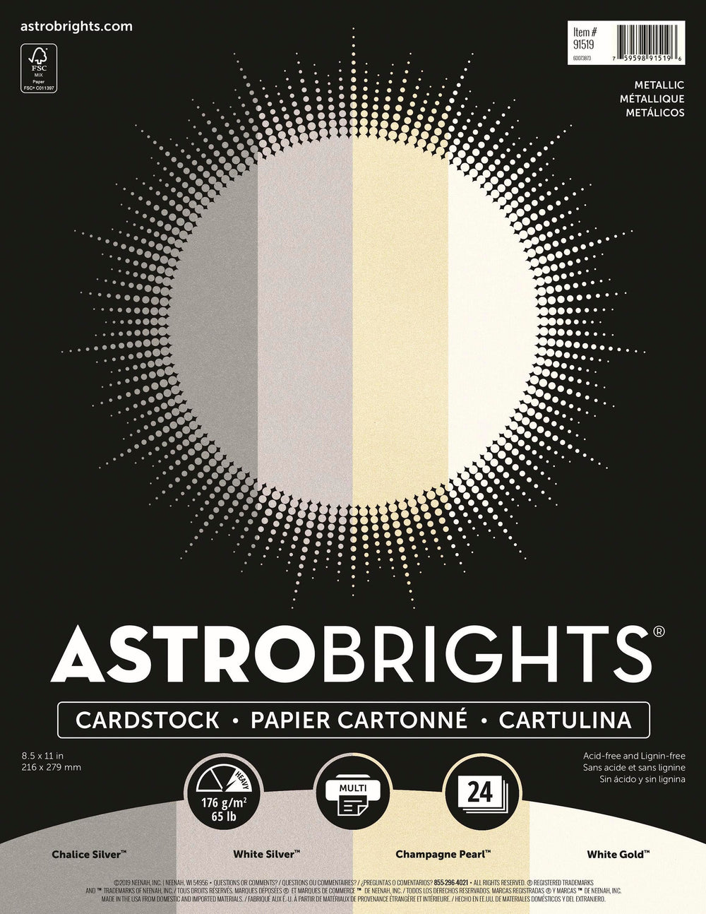 Astrobrights Premium Cardstock, 8-1/2 x 11 Inches, Metallic Assortment, 24 Sheets