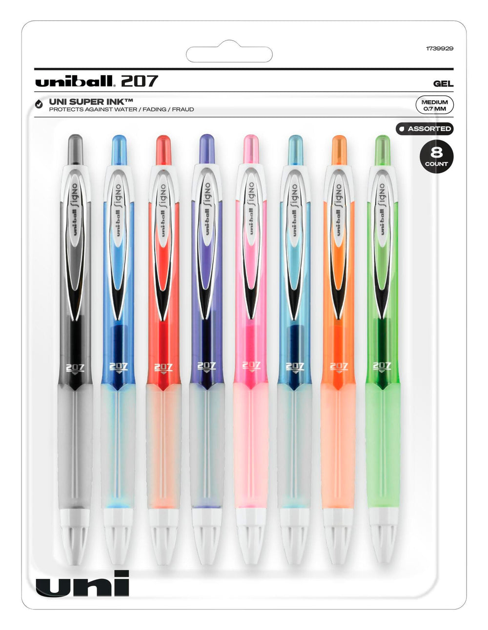 uni 207 Gel Pen, 0.7 mm, Assorted, Set of 8