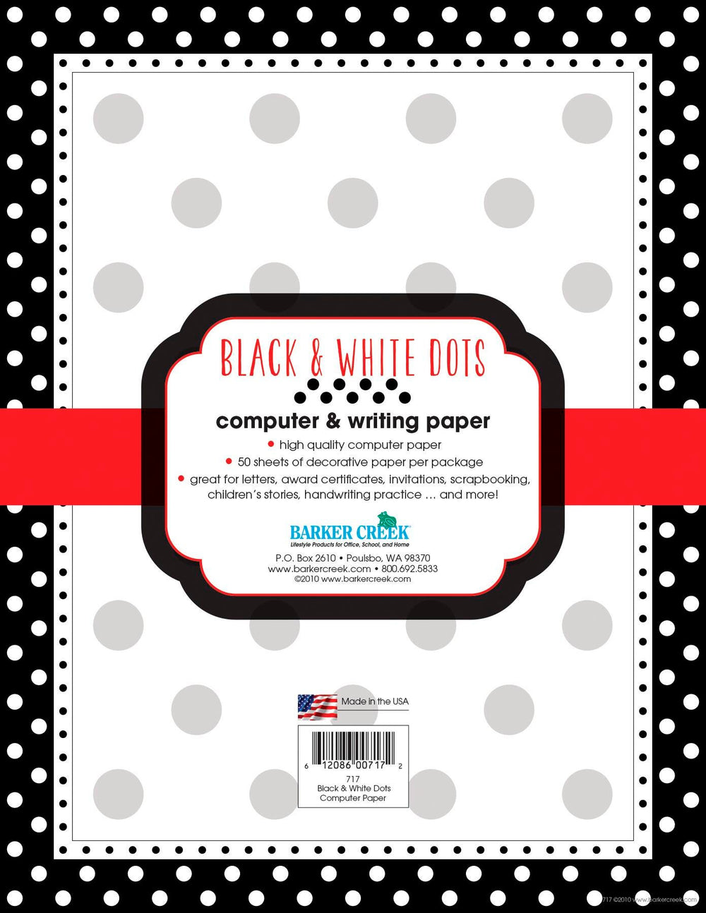 Barker Creek Designer Computer Paper, Black & White Dot, 8-1/2 x 11 Inches, 50 Sheets