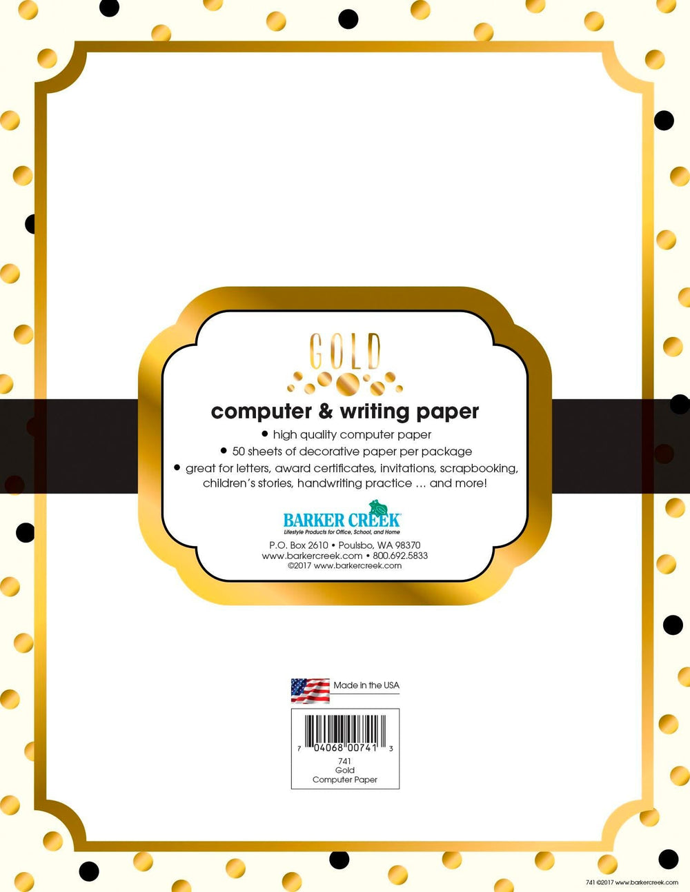 Barker Creek Designer Computer Paper, Gold, 8-1/2 x 11 Inches, 50 Sheets