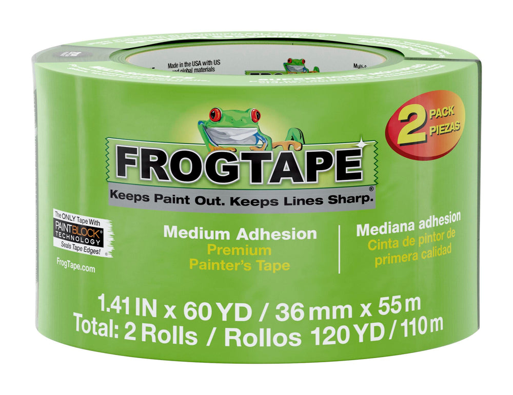 FrogTape Multi-Surface Painter's Tape, 1.41 Inches x 60 Yards, Green, Pack of 2