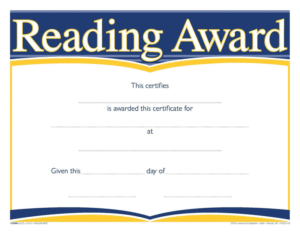 Achieve It! Raised Print Reading Recognition Award, 11 x 8-1/2 inches, Pack of 25