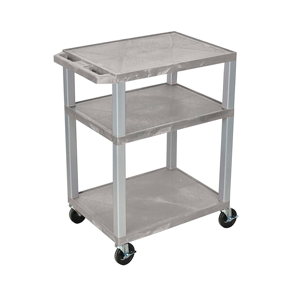 Luxor 3-Shelf Tuffy Cart Without Power, Gray Shelves, Nickel Legs, 24 x 18 x 34 Inches