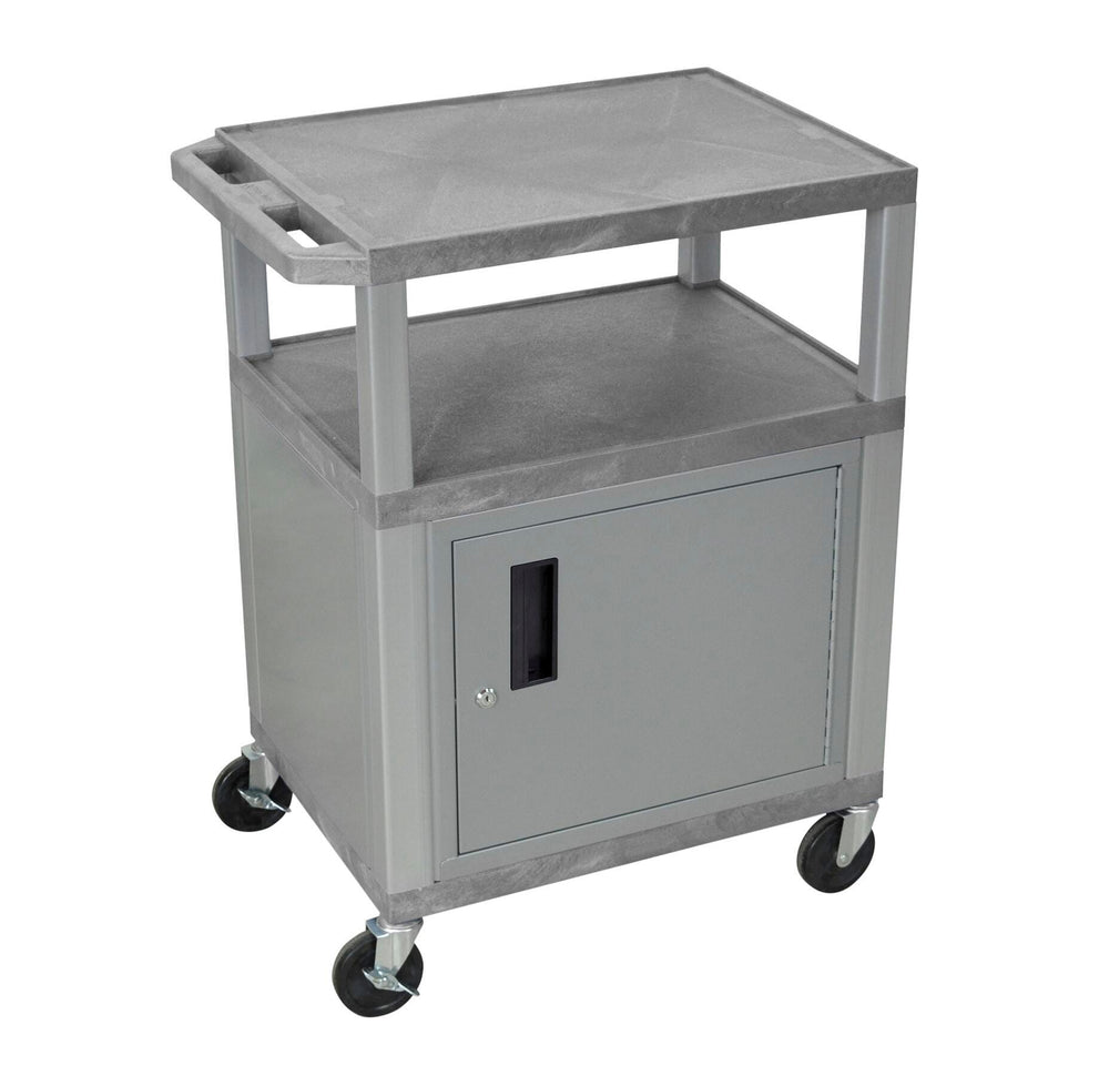 Luxor 3-Shelf With Cabinet Tuffy Cart With Power, Gray Shelves, Nickel Legs, Nickel Cabinet, 24 x 18 x 34 Inches