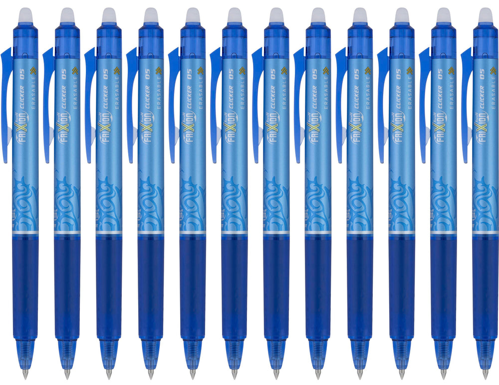 Pilot FriXion Clicker Erasable Gel Ink Pens, Extra Fine Point, Barcoded, Blue Ink, Pack of 12