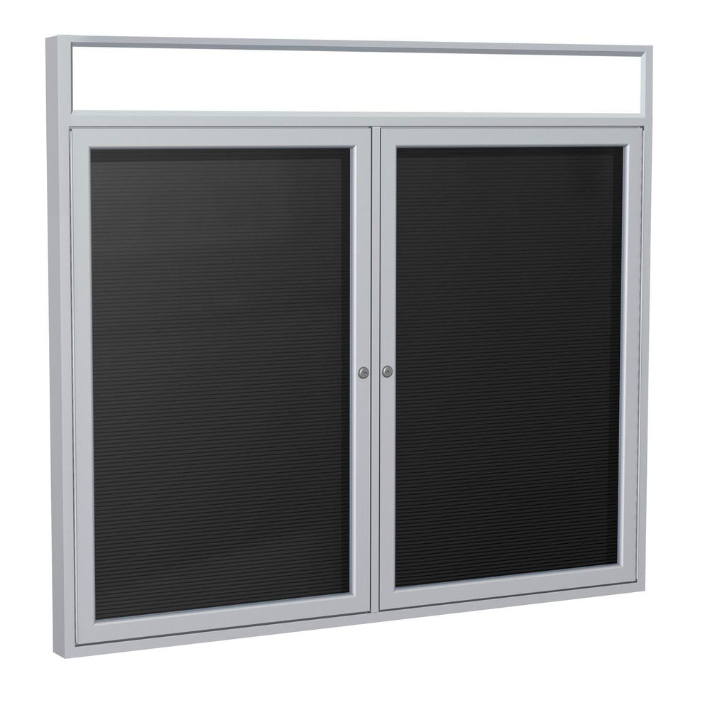 Ghent 2 Door Enclosed Vinyl Letter Board with Satin Aluminum Headliner Frame, 3 x 5 feet, Black