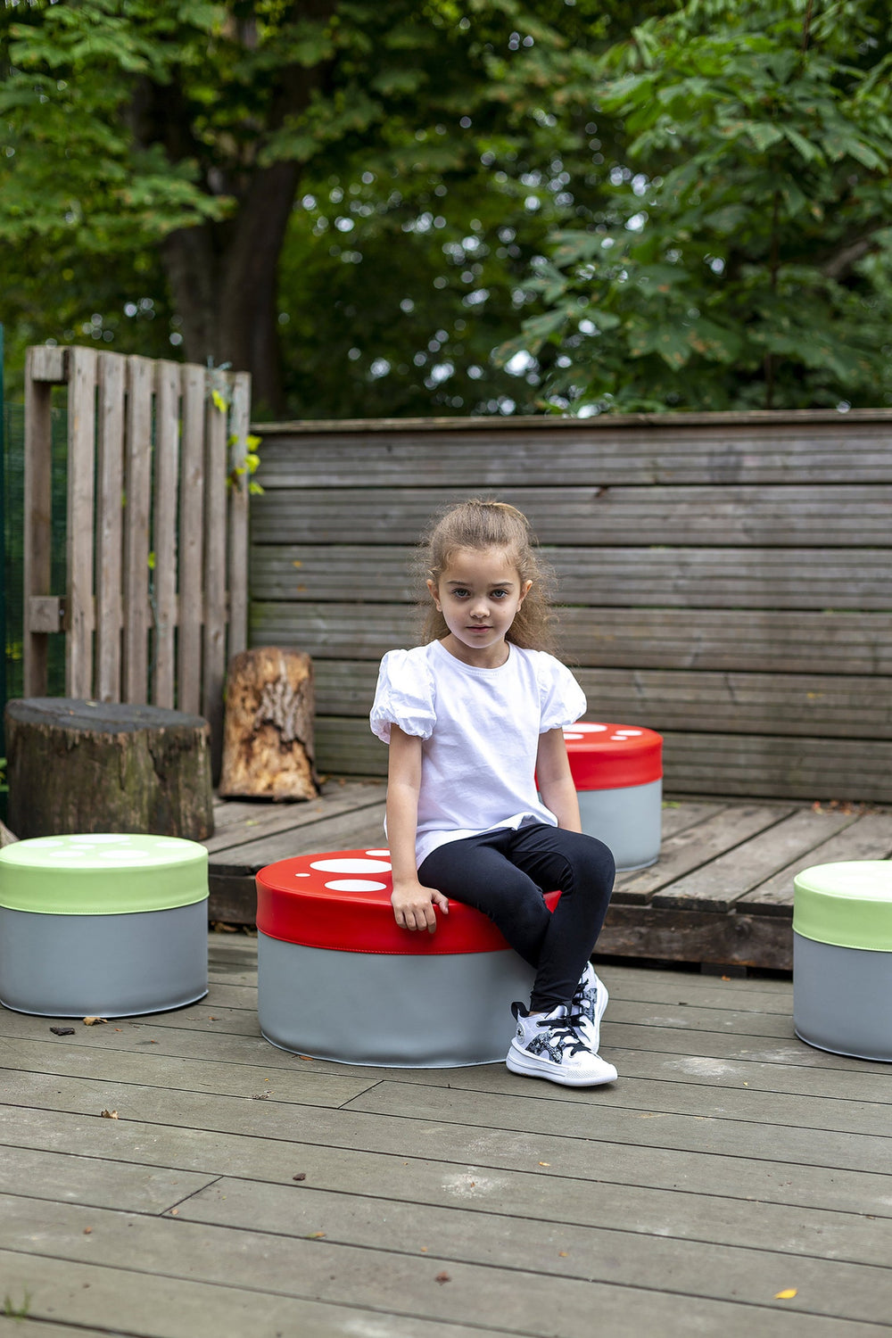 Large toadstool will seat multiple children.