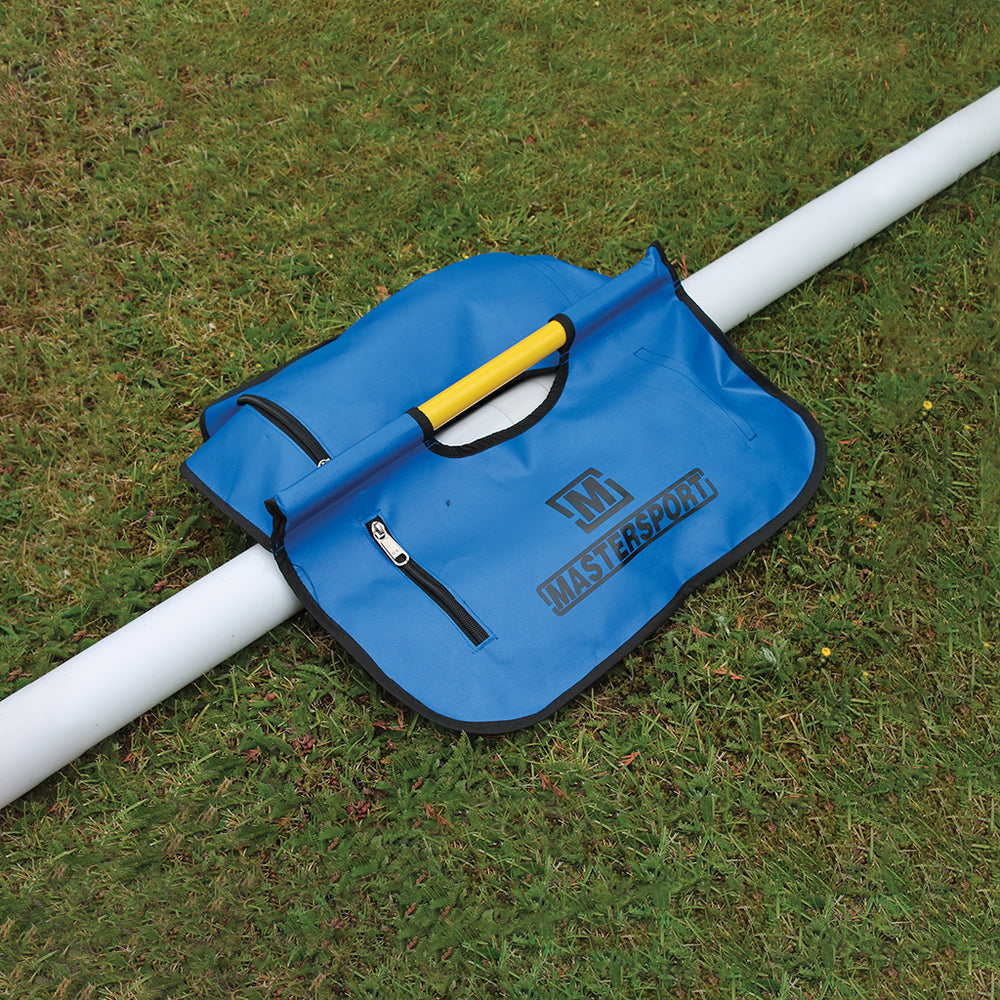 Suitable for indoor/outdoor use; robust vinyl construction with a carrying handle, designed to sit astride a back bar and with large wide open zips is sand fillable.