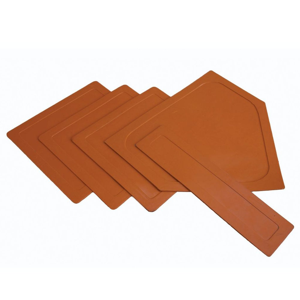 Available in a heavy duty flexible vinyl set suitable for indoors and out, includes Home Plate, Pitcher’s Plate and 3 bases or 3 foam filled bases supplied with ground anchors. Vinyl Pitcher’s Plate available separately.