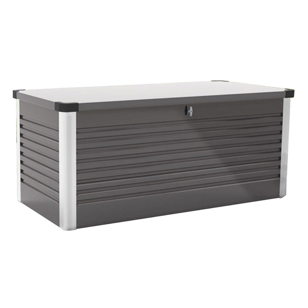 The Playground Storage Box offers very strong and secure fire-resistant metal construction with PVC coated galvanised steel panels guaranteed for 25 years. The box features a secure double bolted locking mechanism and gas strut assisted top opening. Available in anthracite, blue, green, grey, red, white. Large: 1.88cm L X 0.79cm W X 0.73cm H, Small 1.35cm L X 0.79cm W X 0.73cm H.