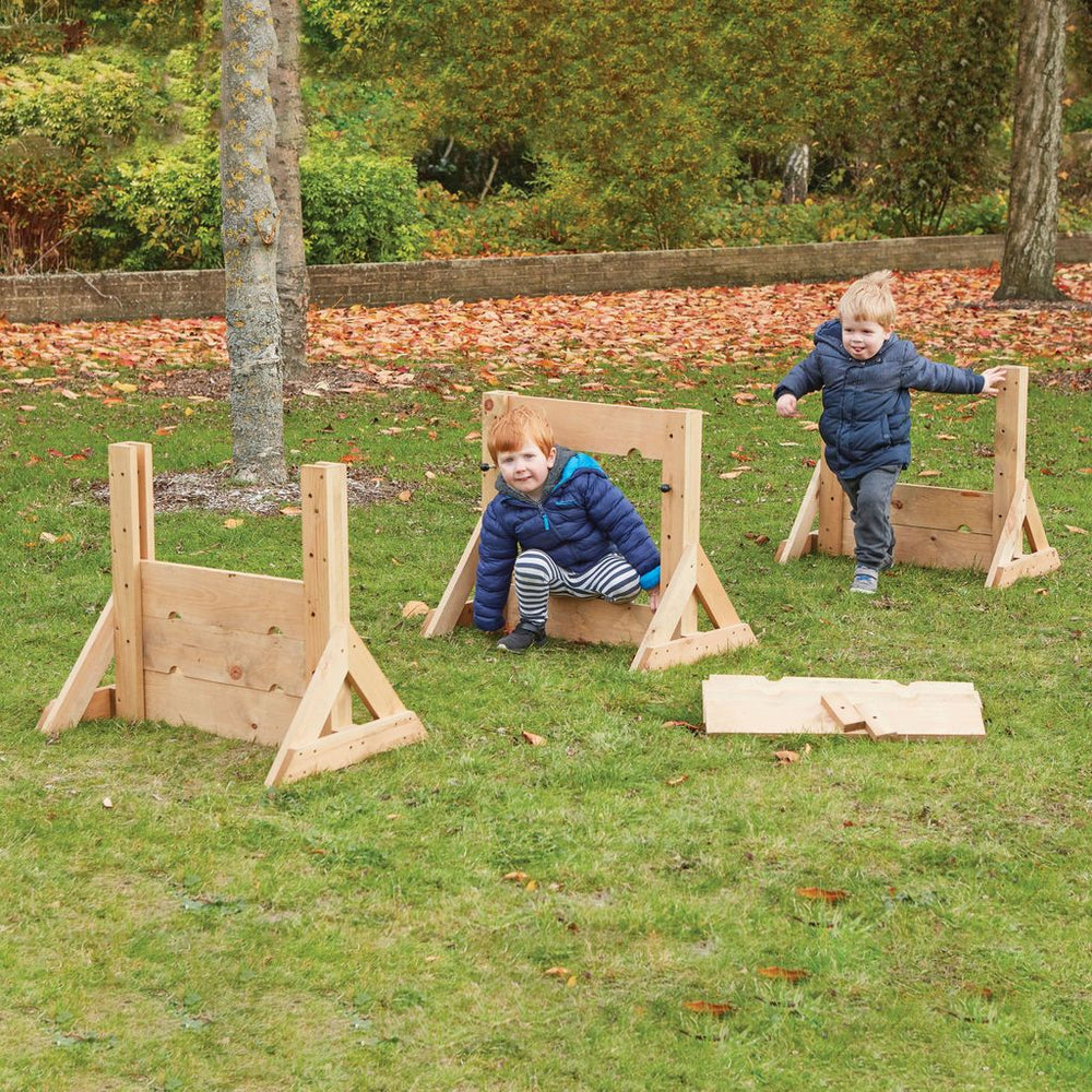 Designed with an easy to use slot system that allows the height of the walls to be varied and provide a challenge. Set of 3. Requires assembly. Size: 75 L x 50 W x 62cm H.