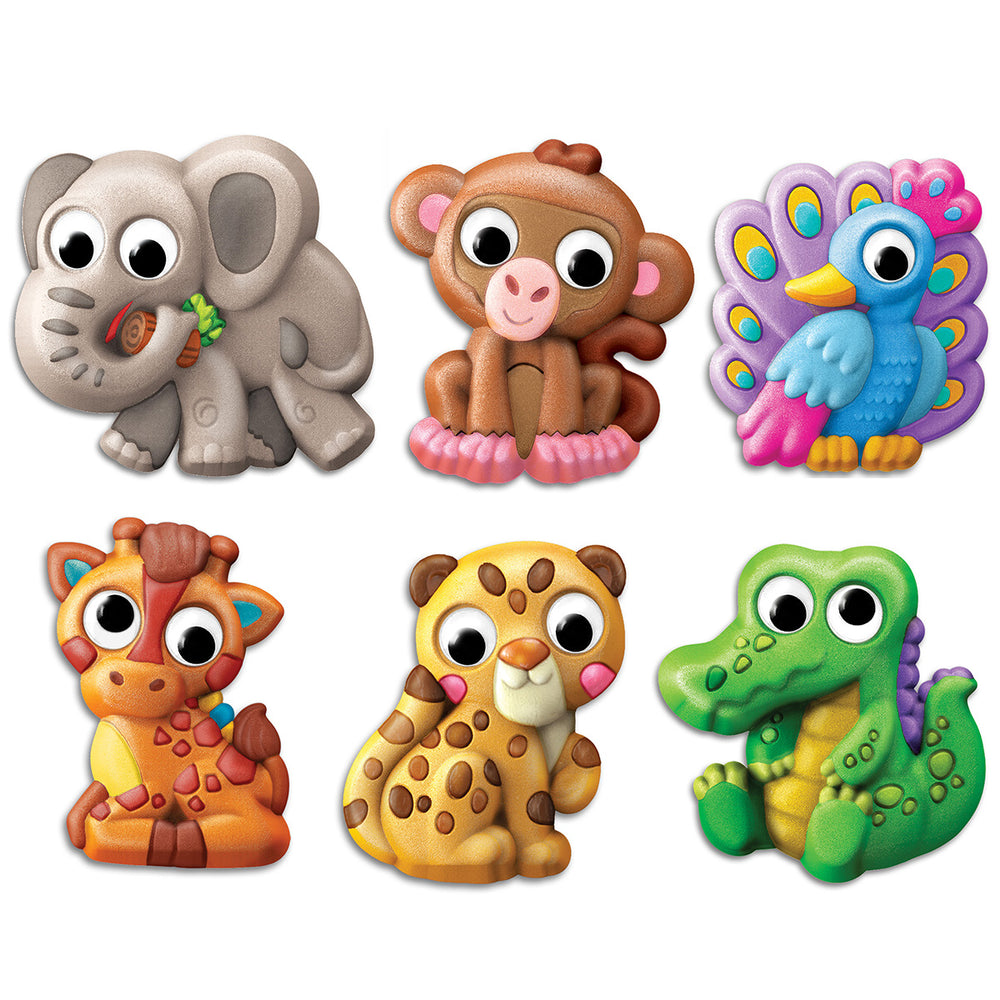Craft, paint, and play with adorable googly-eyed animals! Craft and paint 6 adorable googly-eyed animals with this versatile kit! Includes durable plaster, vibrant paints, and moving eyes—perfect for creativity, fine motor skills, and family bonding fun! 1 mould with 6 animal designs, 1 bag of plaster powder, 1 magnet strip, 2 pins, 1 paint strip, 1 paintbrush, 12 moving eyes and detailed instructions. Contents are sufficient to make 6 pieces. The kit includes a mold with six animal designs, a bag of plaster powder, a paint strip, a paintbrush, 12 moving eyes, and 2 pins.