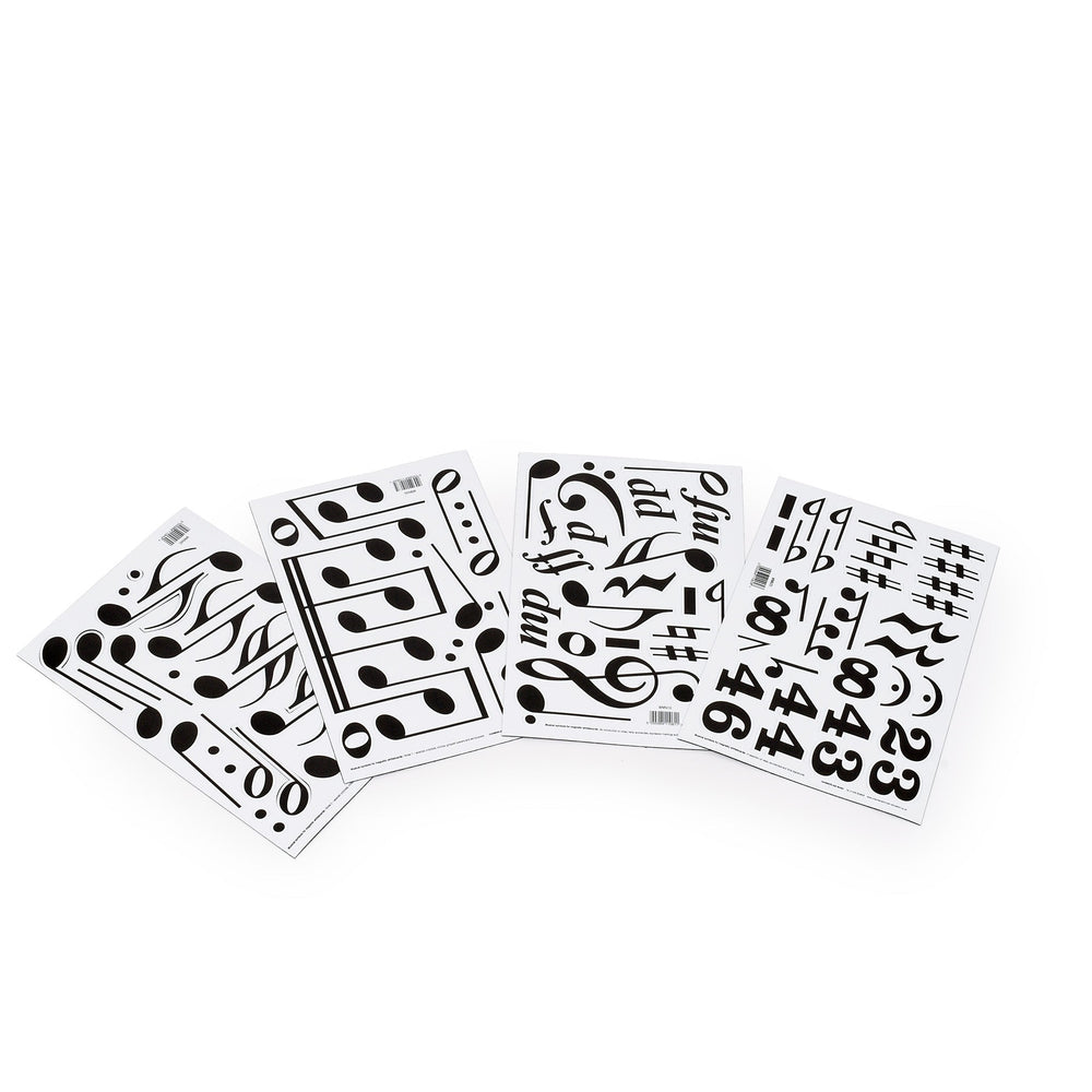 Introducing the magnetic whiteboard music symbols 1 - short, long notes, rests, clefs and dynamicsThese magnetic music symbols are an ideal accessory to our selection of Magiboard metal white boards. The white boards themselves have pre-printed musical staves which these symbols fit perfectly.The sheets are all 200mm x 300mm, so a little narrower and longer than standard A4 size. The symbols themselves are just under a millimetre thick will last very well in a classroom situation.These magnets are, of course, equally good as fridge magnets so any parent with a young music student in the house may well find a good use for them.This pack includes all of the notes and markings from the WMN10, WMN20, WMN30 and WMN40 in one complete set.At Chamberlain Music we supply a large range of Magiboard white boards, some blank but a number with pre-printed music staves for which these magnetic symbols are the perfect accessory.Free when bought with a magnetic whiteboard, Black, solid and easy to see print, Designed for use along side our range of Magiboard metal white boards, Each sheet 200mm x 300mm, Ideal for all manner of musical tuition, Pack of 4 sheets of magnetic music symbols