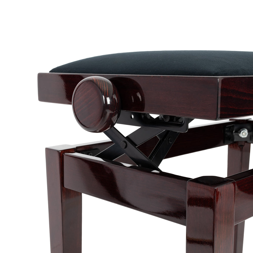 Introducing the Hidrau BG27 Toledo piano stoolA wonderful value and top quality Spanish-made piano stool, single length with height adjustment to enable optimum posture and comfort.The Hidrau patented adjustment mechanism is robust and durable, while the frame, crafted from solid European beech and available in a selection of gloss and satin finishes, is polyester lacquered for a long lasting finish.With a comfortably padded seat cushion embedded into the frame, covered in a smart black velvet upholstery (white simulated leather for white gloss stool frame), the Hidrau Toledo is superb quality for the price and an ideal accompaniment to any upright, grand or digital piano.About Hidrau Piano BenchesFounded in Spain in c.1975, Hidrau Model's founder established his piano stool factory with the sole intention of producing the world's finest piano stools. To this day, the company's philosophy is centred on the constant search for excellence in piano stool manufacture through constant development and innovation. They are the only piano bench manufacturer to have developed their own, proprietary technology including adjustment mechanisms, with many worldwide patented designs.Sustainability and qualityWith a careful eye on sustainability, Hidrau avoids the use of harmful substances in their manufacturing processes, uses sustainably sourced materials and also produces their own solar energy. All of this ensures minimum environmental impact, while ensuring a high quality product that withstands the passage of time, even in the most demanding of environments.High quality adjustable piano stool, Made in Spain from solid European beech, Available in black gloss or satin finishes, Comfortable cushioned seat top embedded in the wooden frame, Robust and durable mechanism for precise height adjustment, Single length piano stool, suitable for upright, grand and digital pianos