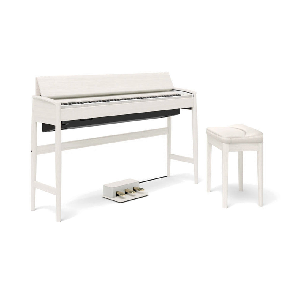 Introducing the Roland Kiyola KF-10 digital piano The Roland Kiyola is a unique collaboration between Roland and a bespoke Japanese furniture maker, to create a digital piano like no other on the market today. In addition to being an extremely capable piano, with Roland's acclaimed SuperNATURAL sound technology and PHA-50 keyboard action, the handmade, solid wood Kiyola is very much a design piece, built to become part of your home decor. Available in three attractive finishes including light oak, walnut and sheer white, the Kiyola also comes supplied with an ergonomically designed, matching stool to complete the set. Artisan digital piano combines hand-crafted solid wood cabinet and SuperNATURAL modelling technology Digital technology meets artisan tradition in the new KIYOLA KF-10. Created in collaboration between Roland and Japanese furniture designer Karimoku, this refined digital piano achieves a perfect harmony of form and function: a powerful instrument that makes a sophisticated statement in your home. With its model name translating as ‘elegance and beauty’, the KIYOLA KF-10 is visually unique in the modern piano market, offering an all-natural, hand-crafted wood cabinet that complements your living space and lifestyle. Meanwhile, the presence of Roland’s innovative digital piano technology delivers the performance you demand as a player, with flagship features including SuperNATURAL Piano sound modelling, dynamic sensing technology via the new PHA-50 keyboard, wireless Bluetooth ® connectivity to your favourite music-making apps and a dynamic array of speakers that fill your home with sound. Available in a Walnut or Pure Oak finish, with a foot pedal and ergonomically designed piano bench included, the KIYOLA KF-10 is a digital piano to both admire and enjoy. Stands out from the crowd with Karimoku hand-crafted all-wood cabinet Designed in-house by Karimoku – Japan’s largest wood furniture-maker since 1940, and a noted exponent of environmentally friendly, low-formaldehyde timbers – the KIYOLA KF-10 is unlike any other piano on the market. Hand-crafted in Japan from all-natural wood, the result is a slim, stylish, ergonomically contoured cabinet that complements your living space like a piece of artisan furniture. Perfect for players who want to make a statement, the individual grain patterns are unique to each piano, as is the natural ageing of the wood, whether you choose a finish of Walnut (KF-10-KW) or Pure Oak (KF-10-KO). Pure, natural wood for quality you can see and feel Admiration alone is not enough: you’ll want to reach out and touch the KIYOLA KF-10. The cabinet’s smooth, contoured side panels are inspired by Karimoku’s high-end sofas, while the slim legs help it blend seamlessly into your living space. By keeping the controls to a minimum, the KIYOLA KF-10 preserves the organic look, with the volume knob and buttons all located on the side to prevent any distraction while playing. The cabinet lid also doubles as the music rest, for an aesthetic that is simple and compact. Over the years of ownership, you’ll also appreciate the beautiful ageing of the natural wood, just as you’d expect from high-end vintage instruments and furniture. Hand-built by masters of traditional Japanese wood crafting Renowned for their uncompromising attention to detail and perfectionism, Karimoku’s experienced craftsmen build each KIYOLA KF-10 cabinet at their Japanese factory which is located in the same part of Japan as Roland’s headquarters and factories. The cabinets are then shipped to the Roland plant for assembly of the internal electronics, speakers and keyboards. With environmentally friendly materials and methods used at every stage, this collaborative manufacturing process ensures the KIYOLA series is ethical and of consistent high quality. Ergonomic piano bench supports your posture and protects your spine Long periods of sitting incorrectly on a badly designed piano bench can be uncomfortable, and may even cause strain to bones and joints, lower back pain and long-term damage to your spine. To address this, the KIYOLA KF-10 takes advantage of Karimoku’s huge experience of furniture design – and associated scientific research – by including an ergonomically designed piano bench. Extensively studied and tested by the Japanese craftsmen, it features a distinctive arched shape that promotes good posture, a wider sitting area that distributes your weight more evenly, and a cushion made from soft, high-density foam. As a result, you can play piano for longer without discomfort or fear of health issues. Responds to your touch with Roland SuperNATURAL Piano modelling and PHA-50 keyboard The KIYOLA KF-10’s artisan looks don’t come at the expense of its playability. Lift the lid on the Karimoku cabinet and you’ll find a digital piano powered by the same acclaimed SuperNATURAL Piano modelling as featured on Roland’s flagship LX/HP digital pianos. Unlike most digital pianos – which merely trigger a sample of a note when you press a key – SuperNATURAL recreates the full tone and response of an acoustic piano, by recreating all the complex interactions that take place during the creation of audible sound. The result is a rich, living, characterful tone that responds to your playing style and touch, complemented by four speakers that deliver a sound that is all-enveloping and alive. The KIYOLA KF-10 also features Roland’s latest PHA-50 keyboard, with each key combining wooden sides and a durable inner molded material, for a traditional look and familiar feel that won’t be marred by costly reliability issues. To further support expressive players, the KIYOLA KF-10 also includes a pedal unit that supports half-pedal technique. Wireless Bluetooth connectivity to useful apps If you’ve ever felt uninspired while playing the piano, you’ll welcome the KIYOLA KF-10, which (despite its minimalist appearance) can wirelessly connect to a smartphone or