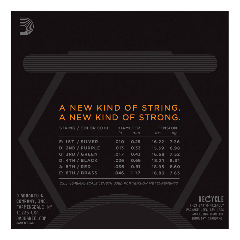 NYXL1046 are designed with the most popular string gauges for comfortable playability and an ideal electric tone. These strings provide the highest level of tuning stability currently possible. Achieved by using a revolutionary 'fusion twist' process for the plain steels.Environmentally friendly, corrosion resistant packaging for strings that are always fresh, Improved tuning stability compared to traditional nickel wound strings, Plain Steel .010, .013, .017, Nickel Wound .026, .036, .046, , ,