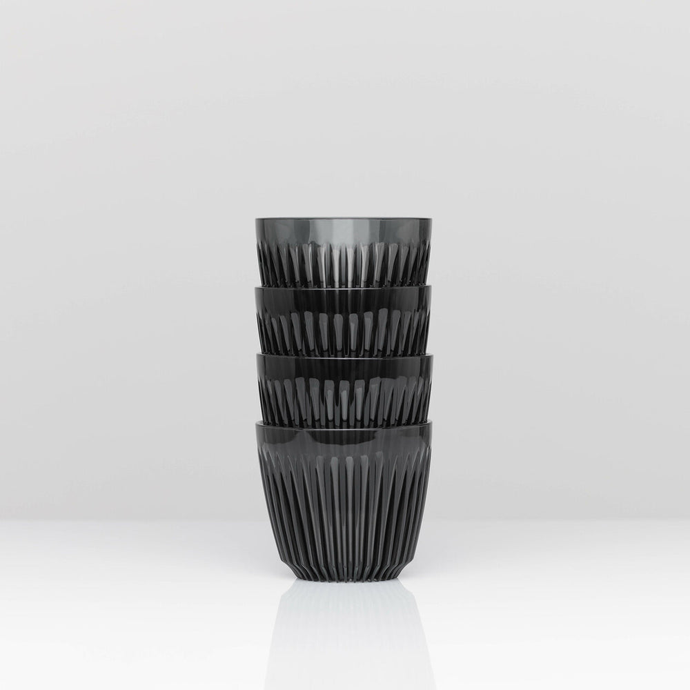 Introducing the 6oz HuskeeRenew Cup 4-packHuskeeRenew embodies true dedication to sustainability whilst still delivering captivating design. These striking cups are perfect for coffee lovers in any setting – whether you’re a teacher, parent, student, or busy professional. Designed to keep your coffee hot and protect your hands, these cups eliminate the need for cardboard or rubber sleeves. Dishwasher safe and stackable, they offer superb convenience for schools and offices, letting you keep the caffeine flowing as long as you need it! This pack contains four 6oz coffee cups - a convenient and cost effect way to purchase for your café or restaurant.Space-efficient, sturdy and understatedly sleek, HuskeeRenew cups are the perfect staffroom accessory, and buying in bulk is easy. All you need to do is become a wholesale customer by following the link below to our quick application form. Cheaper prices, bulk discounts and even customisation options await!Sustainability is key to Huskee’s success. Did you know, in the UK alone we use 7 million disposable coffee cups every day? The reusable HuskeeRenew cups are made from Tritan Renew 50, a semi-transparent material with glass like clarity made from 50% post-consumer recycled material. Tritan Renew 50 is produced through molecular recycling, a process that utilizes waste plastic as the primary raw material instead of fossil-based resources. 4-pack convenienceDue to the stackable nature of Huskee’s cups, lids and saucers, it’s ideal to buy several of them together. This facilitates easy, secure storage without taking up too much valuable cupboard space. Our 4-packs are intended to let customers capitalise on this design feature, and are especially good for office spaces where large quantities of robust cups are always handy. 4-packs are offered for cups, lids and saucers alike in both the HuskeeCup and HuskeeRenew ranges. What is HuskeeRenew?The HuskeeRenew range is made from Tritan Renew 50, a new PBS, BPF and BPA-free food-grade plastic which allows us to include 50% certified recycled content in this range of products. Tritan Renew 50 products use plastic derived from 50% recycled content, and Tritan plastics are used in over 600 products, from drink bottles to medical grade equipment. The material was chosen for its glass-like appearance, excellent durability as well as its stain and odour resisting properties. HuskeeRenew is a high performance copolyester, perfectly designed to hold both your hot and cold drinks. A cup for any scenarioA focus of the Huskee Renew cup design is how it performs in a working coffee shop environment, making them more than ready for use in the office, staffroom or on your commute. Are they easy to clean and dishwasher safe? Of course. Are they durable? Yes. Are they stackable? Absolutely.In fact, this 4-pack stacks together so efficiently that it’s only 17cm tall, making for incredibly easy storage! Fully equipped to take the daily strain of a busy restaurant or café, this attention to long life and usability makes a Huskee Renew cup very suitable for anywhere, and anyone.Pair with the Stopper LidHuskeeCups can be paired with the Stopper Lid, featuring a triangulation of vents on its roof. This creates the perfect flow so it's just like drinking from an open cup. The fins offer exceptional insulation and can be pushed on with one hand. Both the cup and lid are very lightweight and sturdy, so if you’re a devoted café-goer, simply throw it in your bag on the way out, ask your barista to fill it up, and you won’t be needing those wasteful disposable cups any longer. It’s safe to say that HuskeeRenew provides eco-conscious convenience for all. Staying in with your coffee? The matching classic saucer is the perfect size for the HuskeeRenew 6oz cup and is a great way to experience coffee or cold beverages in your cafe, office, or home. They're also stackable, so you can keep thing organised. Sold separately as a 4-packWholesale packs and custom cupsHuskeeCups make for fantastic staff wellbeing gifts, especially with our UV printing customisation service! You can get your logo on the lids of any original HuskeeCup via a state-of-the-art UV printing process, making for the perfect gift to throw in a luxury corporate hamper, take to events or give away as promotional items.The HuskeeCups are also available in great-value wholesale packs which allow you to purchase a large quantity of cups at a discounted price. Please contact the sales team at Frederick Hyde on sales@frederickhyde.com or fill out our application form HERE.Please note: customisation is available on either the original HuskeeCups and the new HuskeeSteel range, but not on HuskeeRenew.How to clean your HuskeeCupHuskeeCups are easy to look after, as long as you follow a few simple rules. AVOID abrasive cleaners such as scourers or Brillo pads. DO use a microfibre cloth for tough stains and if your cups undergo constant use, DO soak once a month in espresso cleaner. The most efficient way to clean your HuskeeCups is to simply put them in the dishwasher. It's as easy as that! HuskeeLoop creates a sustainable futureHuskeeCups should last for several years, but when they do eventually reach the end of their long life, please return them to us! We'll then make sure they get returned to the manufacturers to get recycled into new Huskee products. This is HuskeeLoop - the ultimate closed-loop ecosystem ensuring zero waste.Reusable, sustainable coffee cup made from 50% recycled material, Translucent glass-like finish, available in smoke or amber colours, Ideal for use in the staffroom, office, or on your commute, Long lasting, dishwasher safe and stackable, Part of the HuskeeLoop system that completely eliminates waste, Sustainably stylish, Huskee make perfect reusable coffee cup