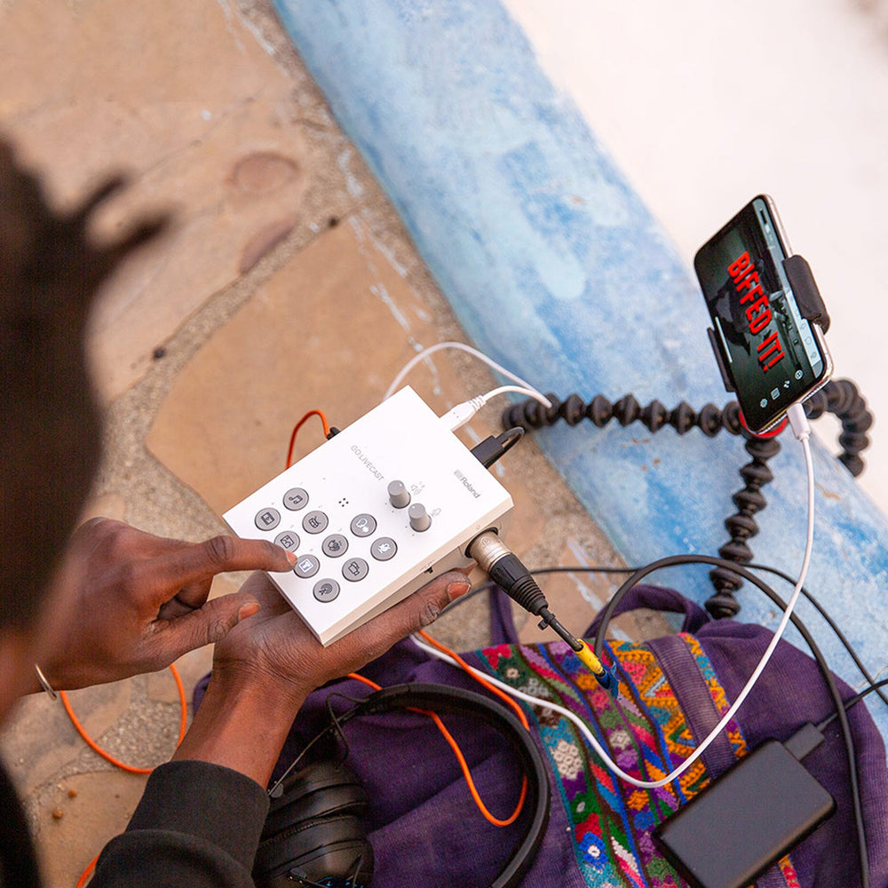 Introducing the Roland GO:LIVECAST live streaming studio for smartphones Although it’s easy to stream live content with your smartphone, making your broadcasts look professional takes more effort. That’s why you need GO:LIVECAST, the simple and affordable way to bring superior production values to your webcasting. This hardware/app combo is a fully featured streaming studio that lets you mix sound, display titles, play media, trigger sound effects, and more—without needing a computer or costly dedicated A/V gear. With just the GO:LIVECAST hardware, companion app, and your smartphone, you have all the tools you need to present engaging live web shows that will rival the most advanced creators on social media. There's no need to purchase fancy cameras or to spend hours learning to use professional software - using the GOLIVECAST device and app is fast, simple and is perfect for busy, on the go creators. Plug-and-Play Setup Using GO:LIVECAST is quick and easy—just plug in your smartphone and connect earbuds or headphones for sound monitoring. A built-in mic is ready to capture high-quality sound, complete with onboard reverb if you like to sing. An external professional mic is also supported via the XLR input, and there’s even a stereo line input for plugging in a guitar preamp, synth, mixer, or other sound source. Add Your Content to Your Livestream The GO:LIVECAST app includes easy-to-use media tools that bring premium production values to your web shows. Create your own personalized libraries for music, sound effects, photos, and videos, or start creating with a variety of pre-installed options. Custom titles and text are also available, enhancing your productions even further. Media elements for different shows can be stored in Live Sets, all queued up and ready for when it’s time to go live. Direct Connection with Streaming Platforms The GO:LIVECAST app logs in to your accounts on Facebook Live, Twitch, YouTube, and other major streaming services.* Just select a platform and tap to start webcasting! And as you livestream, comments from your viewers can be monitored via a scrolling window in the app. *Some restrictions may apply. Please review the support information for your streaming service for setup instructions. A Mini Broadcast Studio at Your Fingertips Via a simple, customizable control layout, the GO:LIVECAST hardware lets you direct your live presentations and stay fully engaged with your audience. All it takes is a touch to start broadcasting, play music, display titles, launch photos and videos—or even trigger some applause at the end of the show! Knobs provide quick control of mic and media volumes, while the mic-mute button will keep coughs and unwanted sounds out of your livestream. Get the Best Out of Your Smartphone Camera Select your smartphone’s front or rear camera within the app and add a skin filter, if needed, to soften the look. Portrait or landscape mode is automatically set by your phone’s positioning, while in-camera mirroring displays the proper left/right perspective to your audience. It’s even possible to connect a second smartphone camera over wi-fi, with one-touch switching and support for split-screen views. Version 1.10 of the GO:LIVECAST app supports streaming sound and images from a second phone via its screen record function. This allows gamers to stream live feeds from the second phone while overlaying picture-in-picture from its front-facing camera. Complete pro production studio for webcasting with smartphone/tablet, 3 mic input options for great vocal sound, Onboard mic with reverb effect, Line input for connecting an instrument, mixer, or other external audio device, Intuitive, hands-on controls, Supplied with USB cables