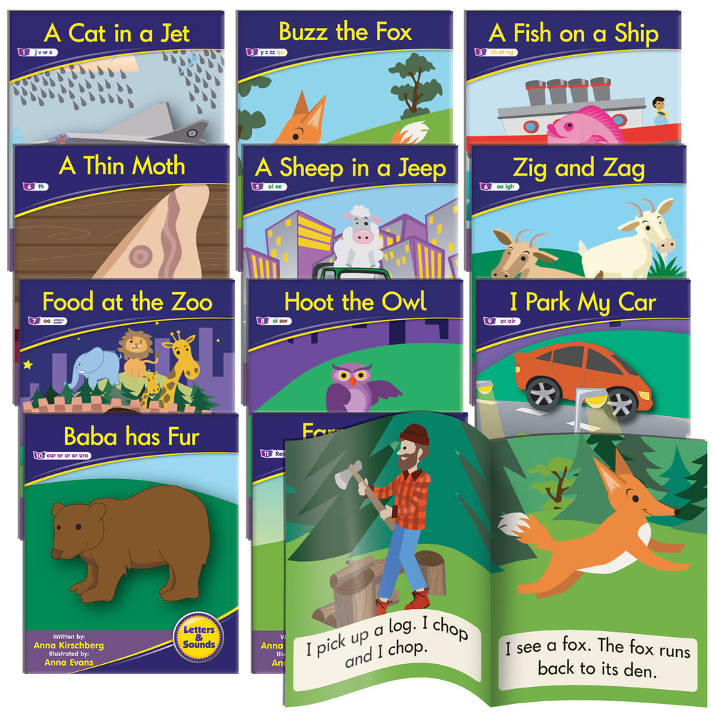 Phonics readers introduce the next 22 letter sounds. These readers have been written using a strictly controlled vocabulary. Text uses only decodable regular words (according to a week-by-week progression) along with 'tricky words'. Tricky words are words frequently used that are not decodable. Set includes 12 fiction readers, each with colorful illustrations. 12 Fiction readers Introduces next 22 letter sounds.Inside front shows exact progression.Point and say page for tricky words.Bright, colorful illustrations.12 x books