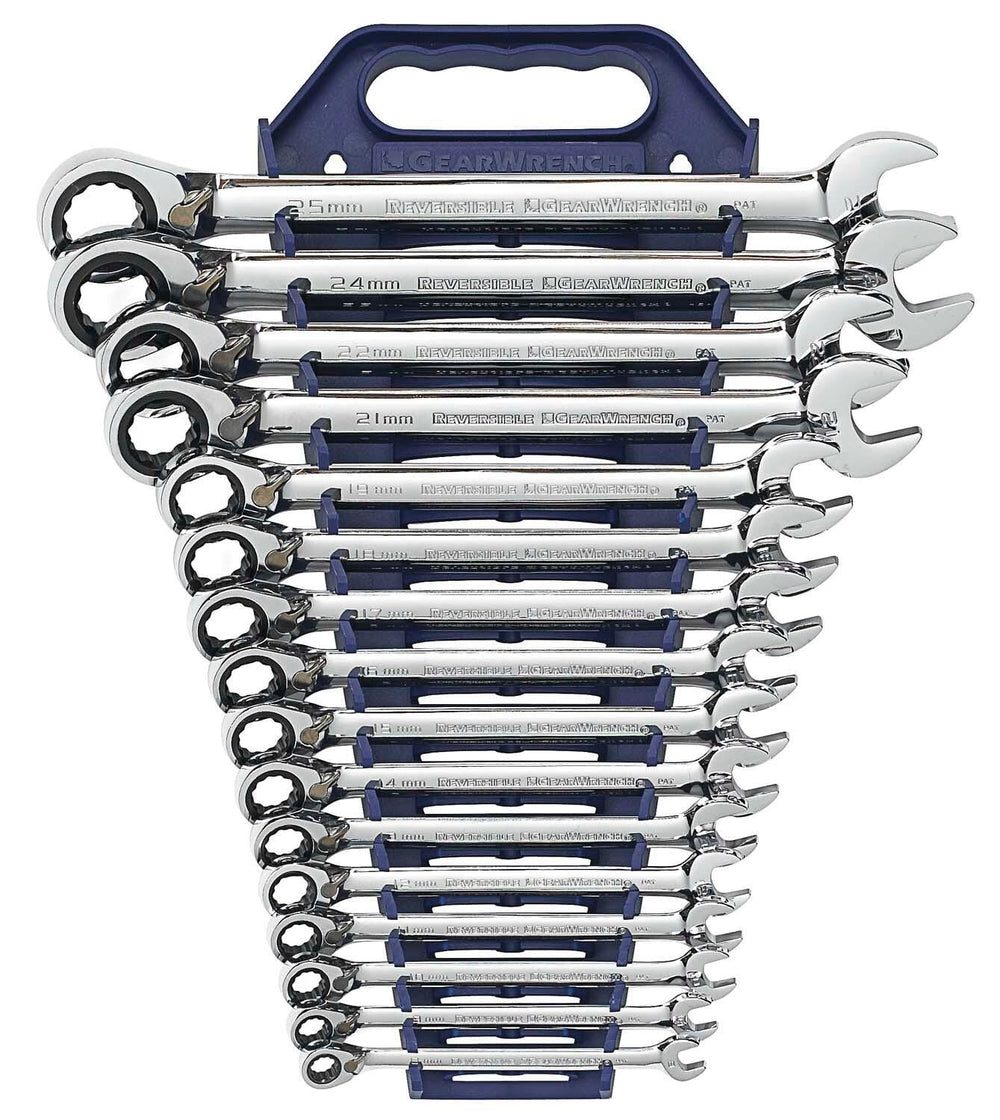 Gearwrench 16-Piece Reversible Ratcheting Combination Wrench Set - Metric, Set of 16