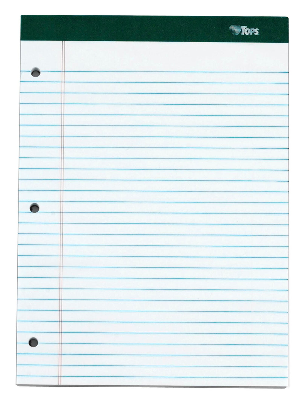 TOPS Docket Legal Pad, 3-Hole Punched, 8-1/2 x 11-3/4 Inches, White, 100 Sheets, Pack of 6