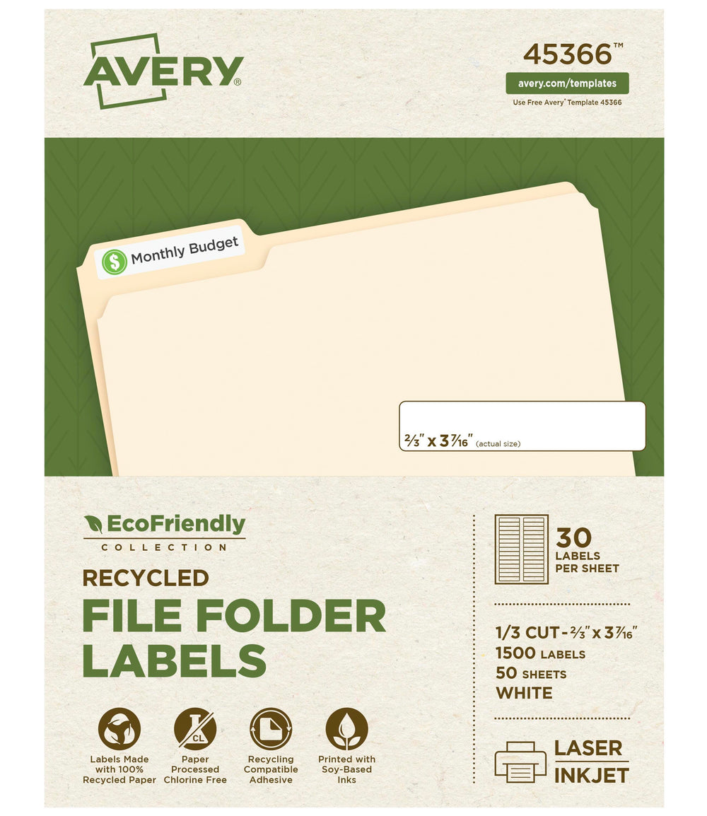 Avery EcoFriendly File Folder Labels, 2/3 x 3-7/16 Inches, Pack of 1500