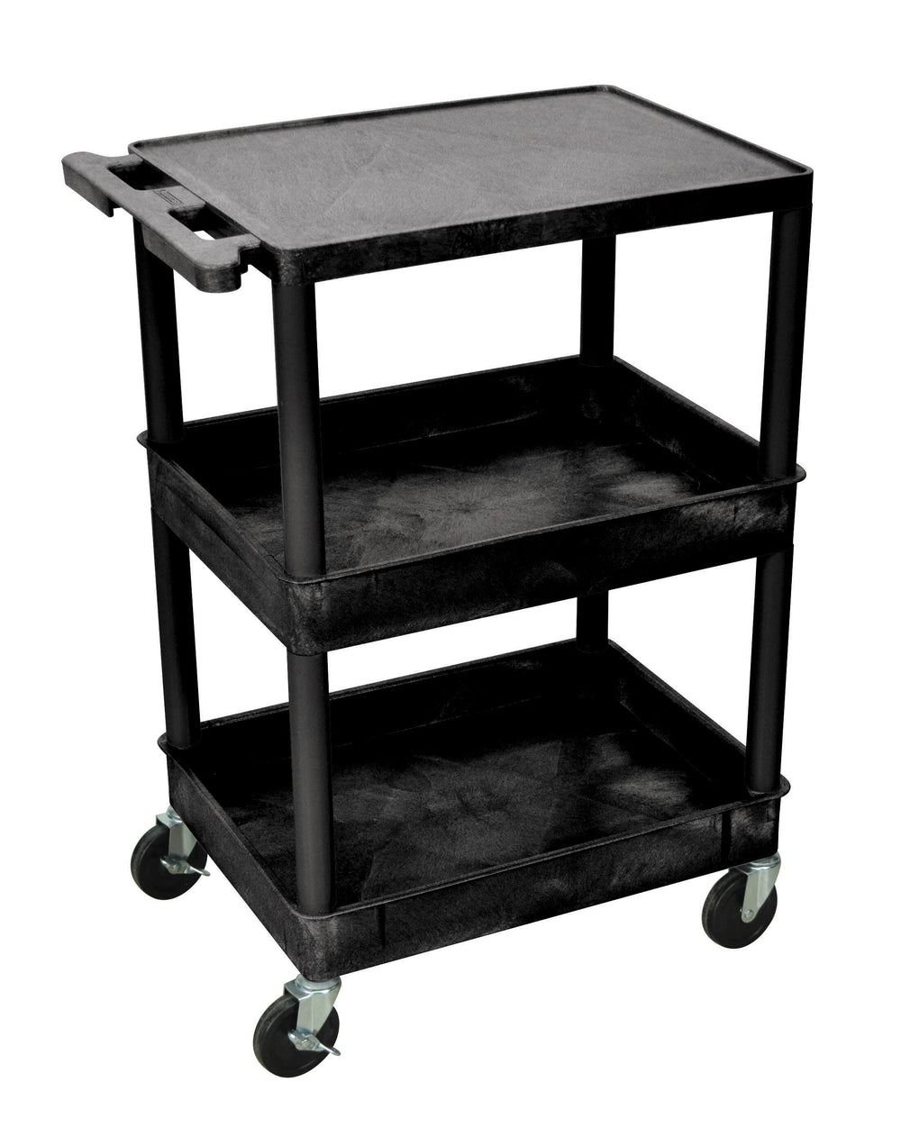 Luxor H Wilson 3-Shelves Multi-Purpose Utility Tub Cart, 24 x 18 X 36-1/2 iNCHES, HDPE, Black, 4 Wheel