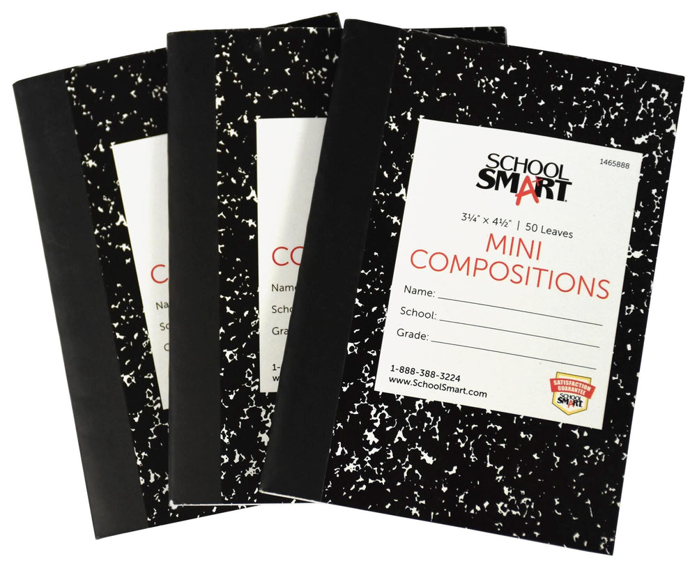 School Smart Mini Composition Book, 3-1/4 x 4-1/2 Inches, 50 Sheets, Pack of 3
