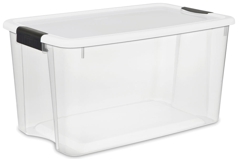 Sterilite Ultra Latch Storage Tote Box with White Lid, 70 qt/66 L, Clear