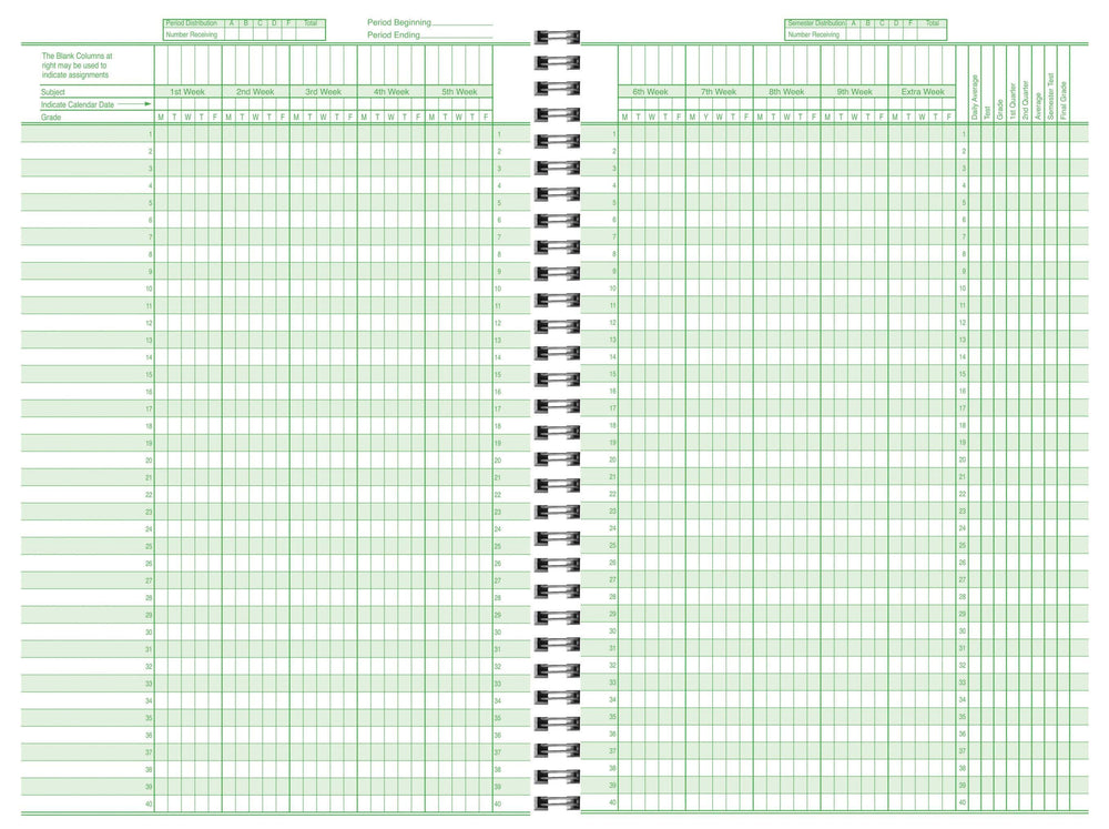 Hammond & Stephens Class Record Book, 40 Students, 9 Week, 8 Subject, 6-3/4 X 11 Inches