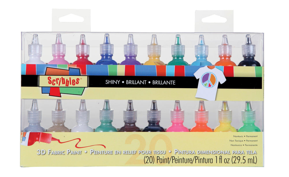 Scribbles 3D Fabric Paint Set, 1 oz Bottle, Assorted Primary, Set of 20