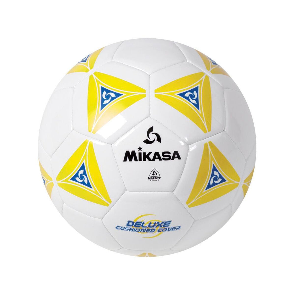 Mikasa Size 5 Deluxe Cushioned Soccer Ball, Ages 12 and Up, 27 Inch Diameter, White/Yellow