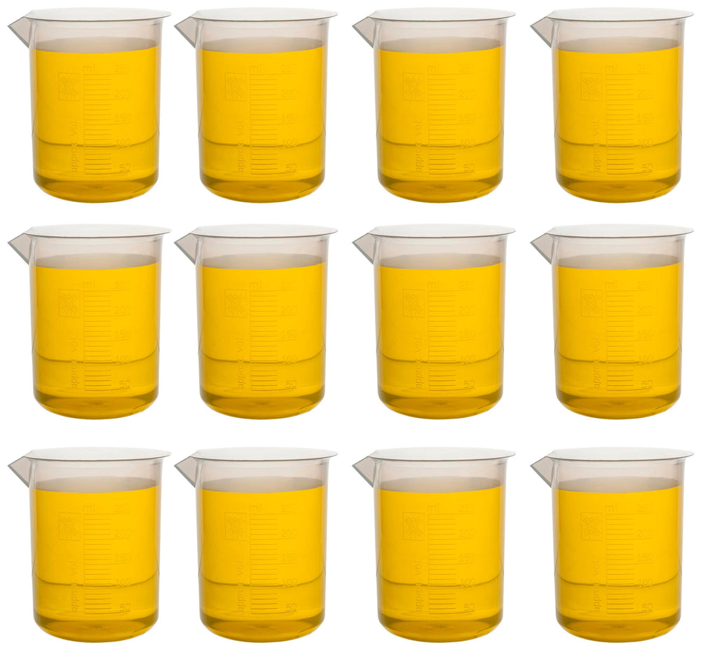 Eisco 250mL Polypropylene Beaker, Molded Graduations, Pack of 12